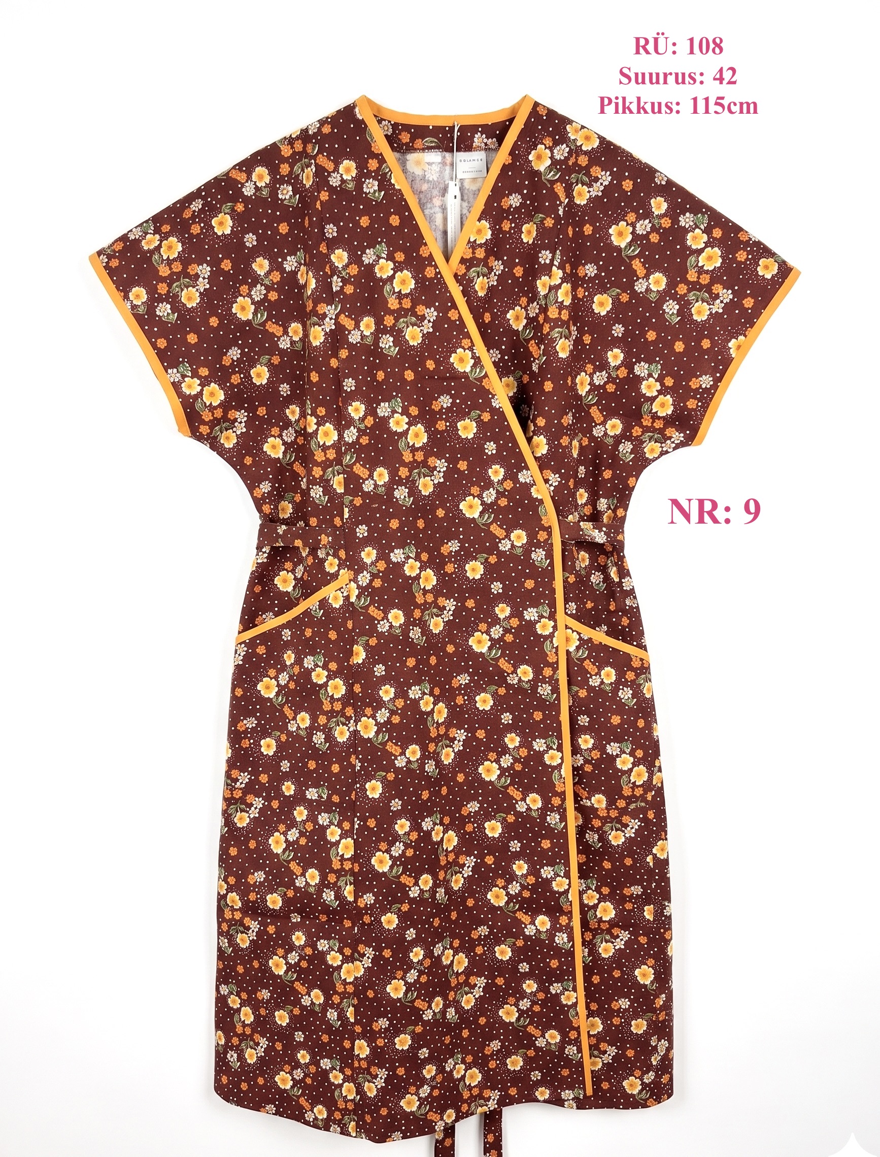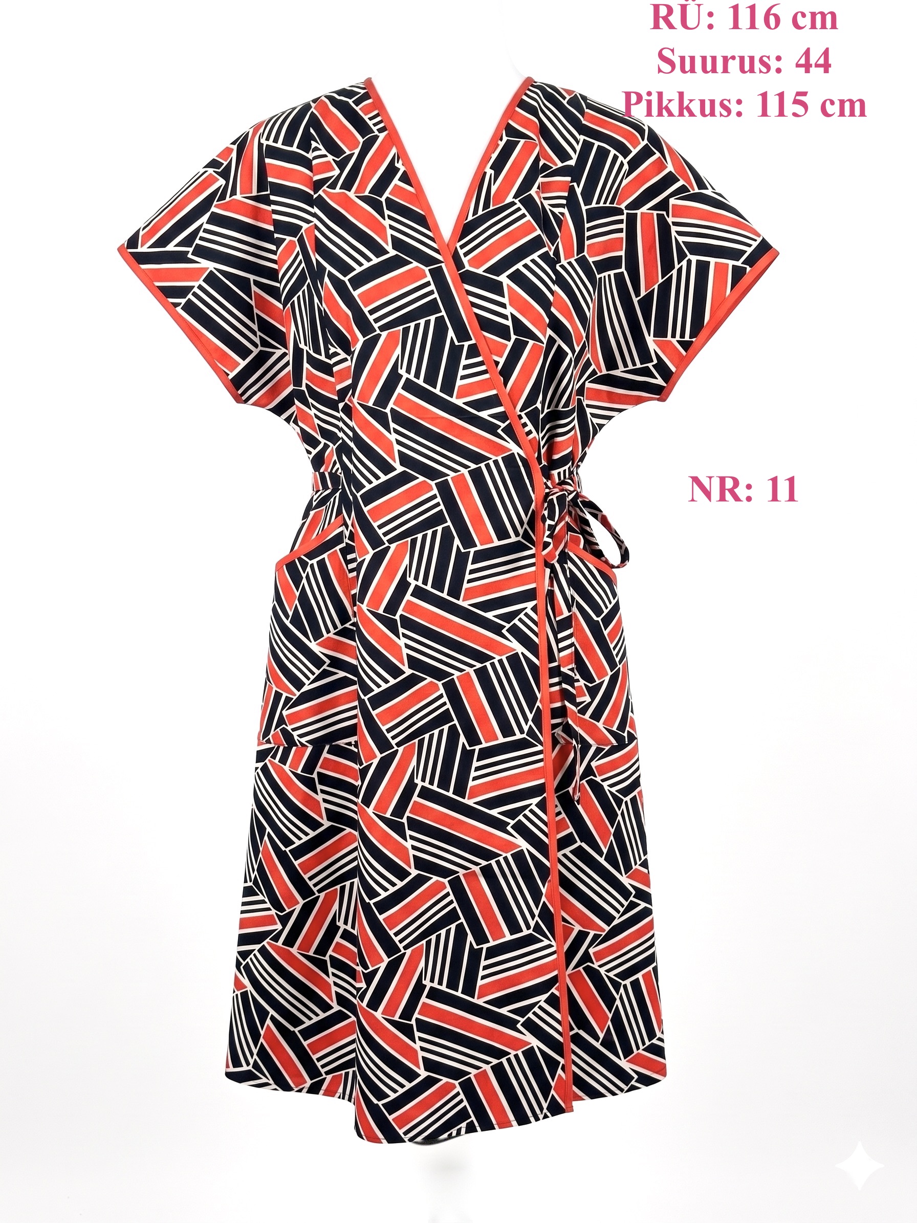 The timeless cut/patterns fots comfotably on you and highlights the waist just as much as needed. Wearing it is made even more comfortable by the wrap-style design: the belt is threaded through the right side, helping the garment stay nicely in place. And of course- pockets are must!