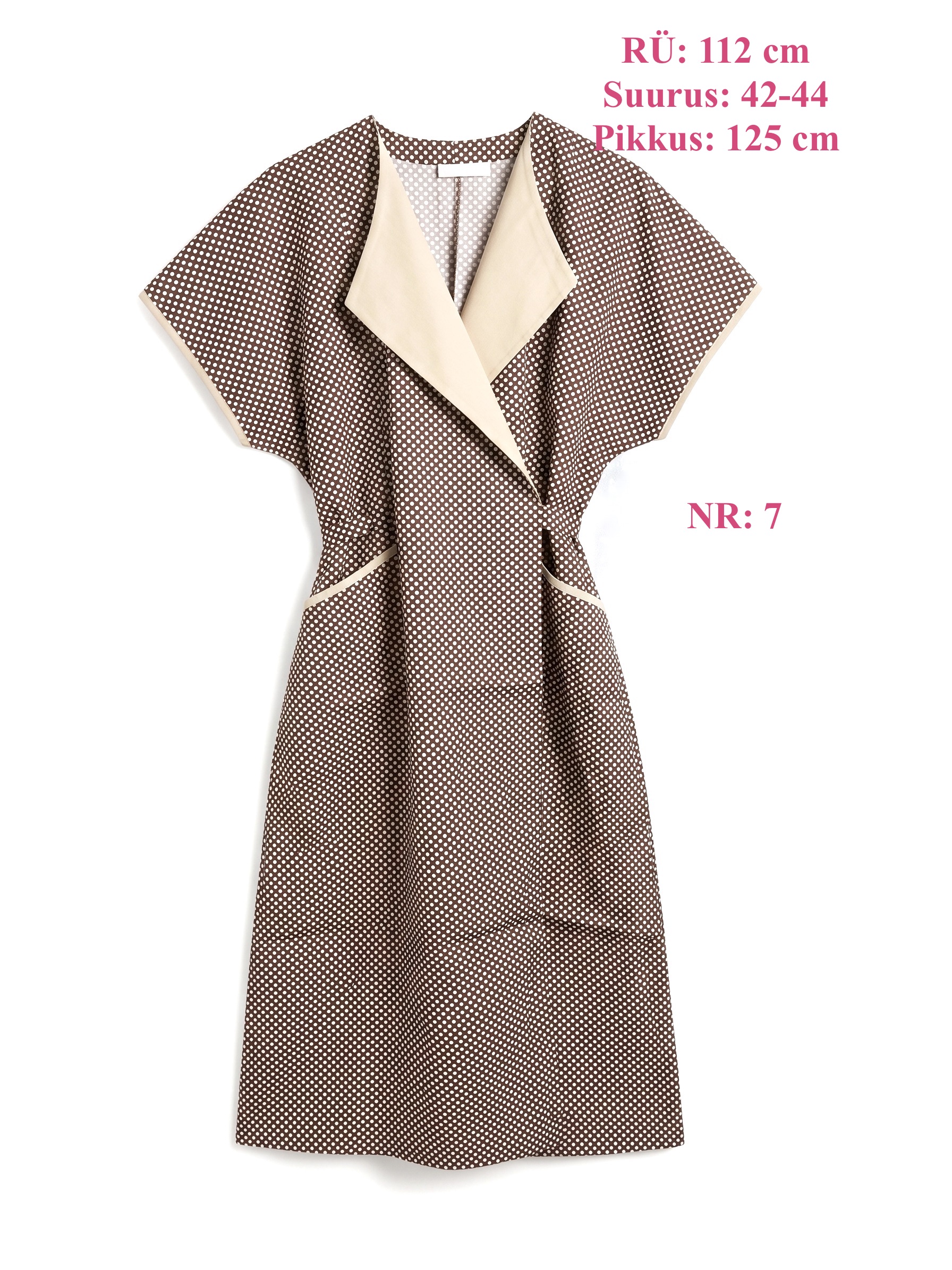 | Täpsem info | Iga pildi juures on näha kitli rinnaümbermõõt (mille järgi on kõige täpsem endale toodet valida), suurusnumber ja üldpikkus selja pealt mõõdetuna. |