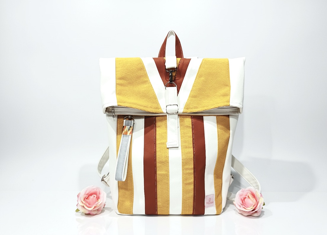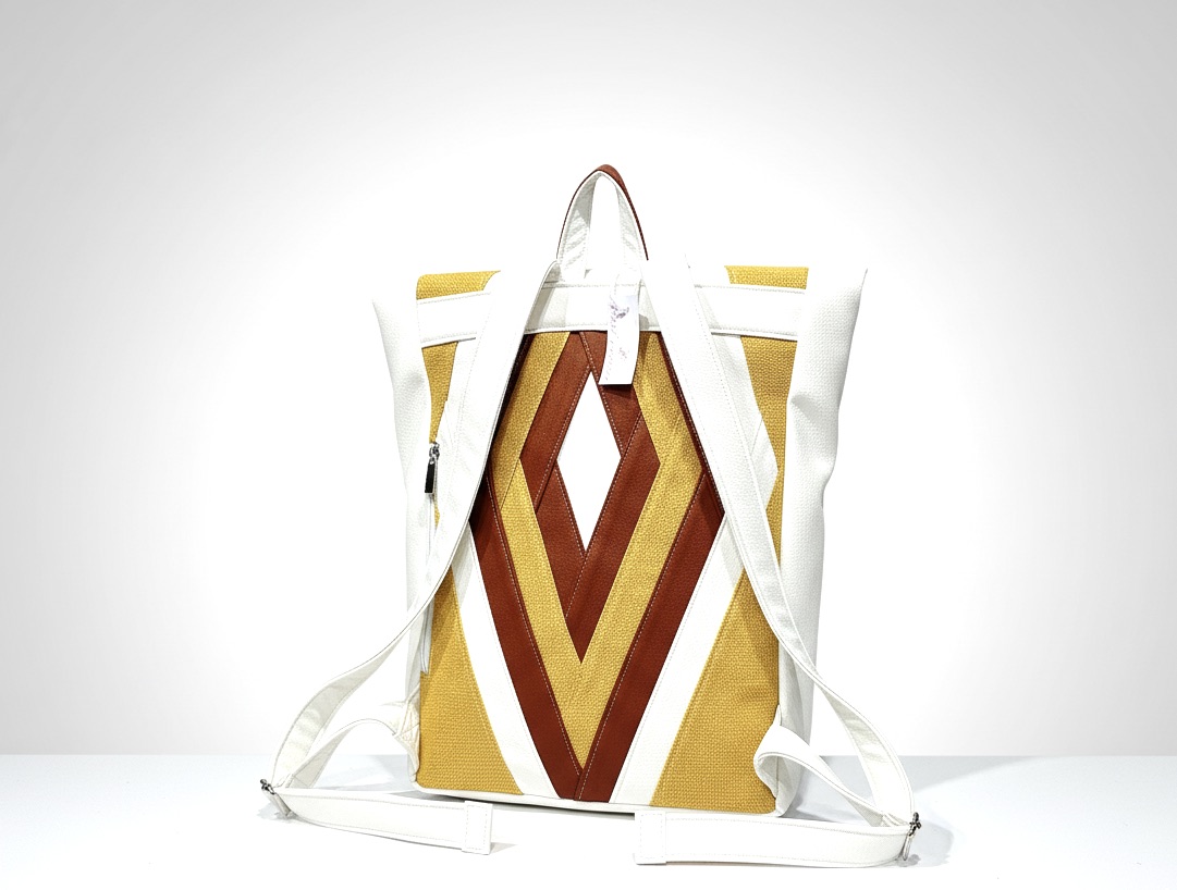 The top of the Dellin Doors backpack is made from local furniture factory leftovers: veganleather and fabrics pieces. As on other items we use also here priciple of valuable recycling of leftover materials.