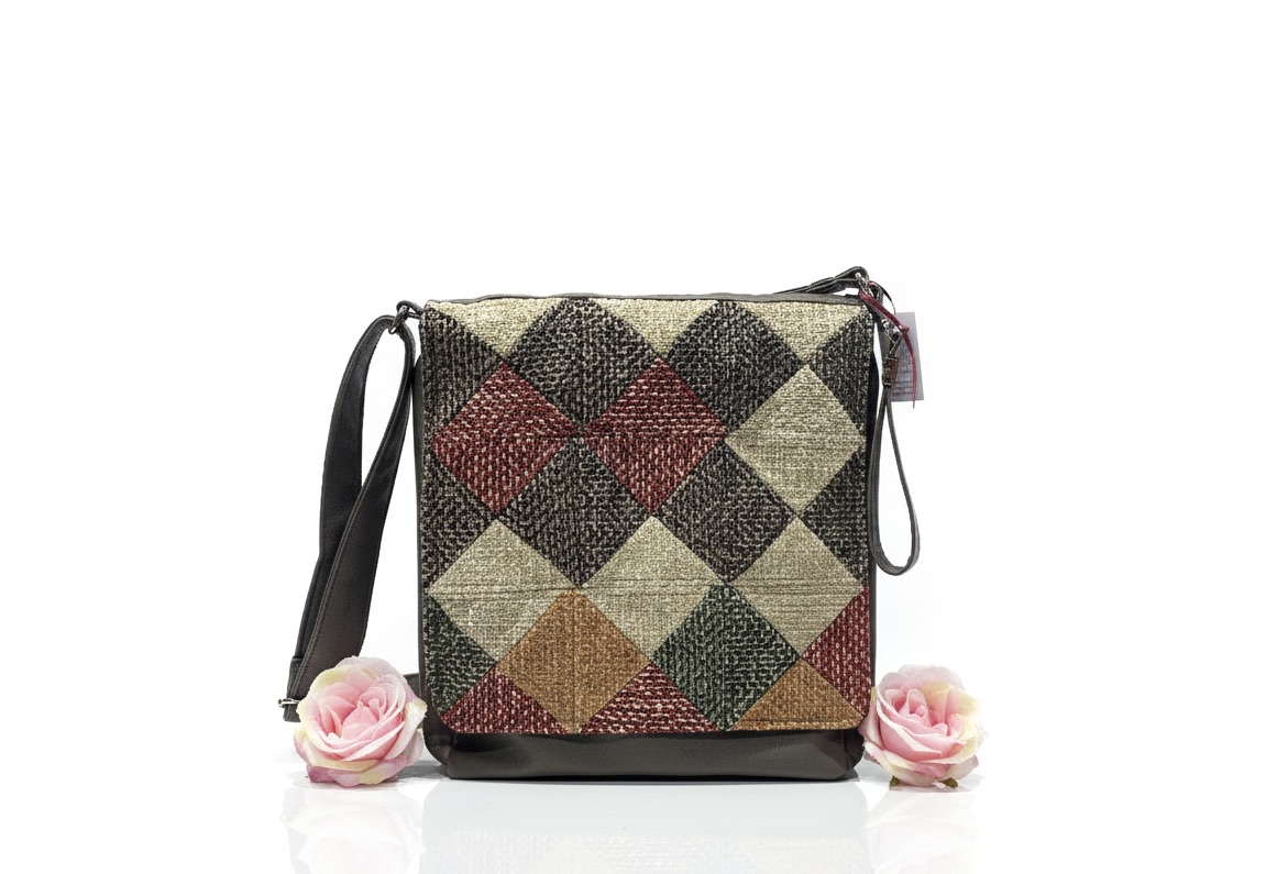 | Materjal | Heast tugevast mööblinahast valmistatud õlakott, klapp valmistatud lapitehnikas mööblikangast. Sees niiskuskindel pehmendusmaterjal ning ka niiskuskindel vooder |